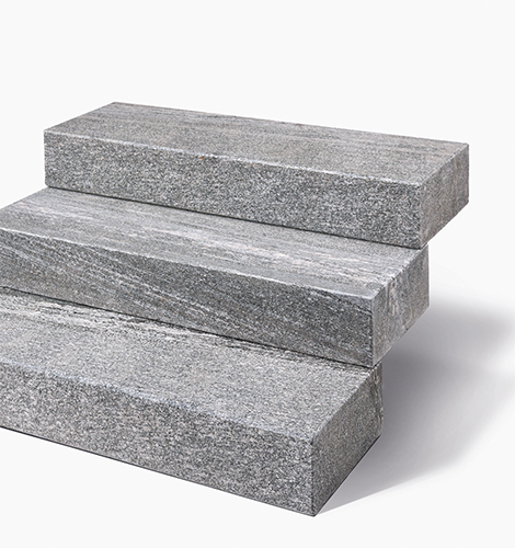 Herkunft: Vietnam, allseits gesägt, geflammt & wassergestrahlt, Kanten gefast, anthrazit-schwarz
