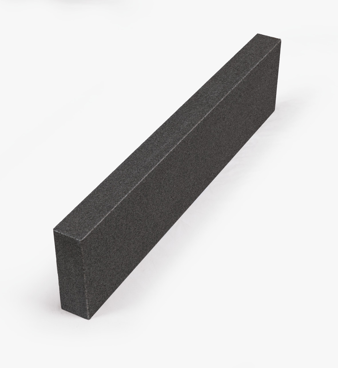 Herkunft: Simbabwe, allseits gesägt, geflammt & wassergestrahlt, Kanten gefast, anthrazit-schwarz