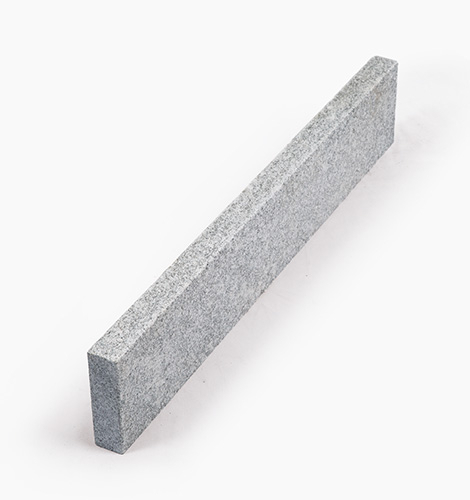Eine Sichtfläche (Front), beide Köpfe und eine Längsseite in Keramik, auf Gehrung gesägt und frostfest verklebt. Restliche Seiten offen, mit sichtbarem Betonkern. Gehrungskante mit Fase,